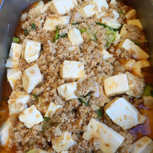・鶏ナンコツ麻婆豆腐 ・れんこん、たけのこ、コンソメ煮 ・わかめとたまご、舞茸スープ